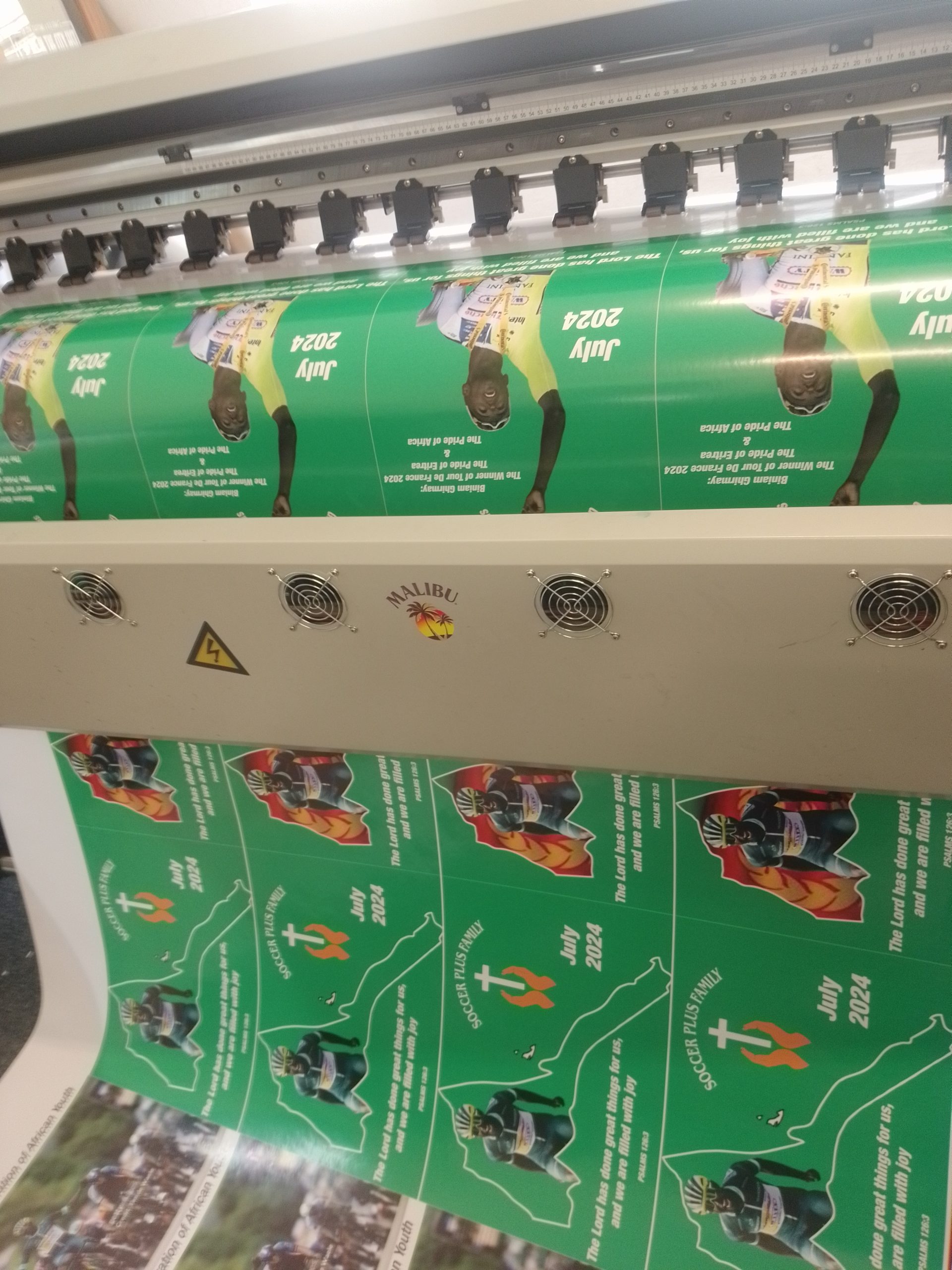 All stickers are printed and Charged per Square Metre, printed on a Glossy  Vinyl Sticker  1,35m wide Large Format